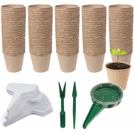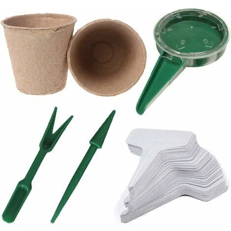 L’emballage comprend: 100 PCS pots de tourbe pour les semis, 50 PCS étiquettes de plantes blanches, 1 PCS distributeur de graines de semis, 2 PCS outils de repiquage.