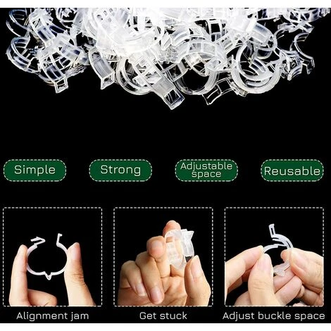 Haute qualité : fabriqués à partir de plastique durable, les clips de support pour plantes maintiennent les tiges et les semis en toute sécurité pour soutenir les piquets. Les clips de treillis pour plantes grimpantes sont d’excellents supports pour les haricots et les plantes avec une tige suffisamment petite pour que vous puissiez insérer le piquet dans le trou de 2,5 cm de diamètre. Les clips de support sont réutilisables, résistants aux intempéries, bien contre le vieillissement, les hautes températures, la pourriture, pas facile à craquer. Conception spéciale : la conception creuse assure la circulation de l’air, améliore la croissance des plantes. Un espace étroit pour les cordes passant à travers, de petites pinces à plantes sont faites sur les cordes, ne peuvent pas bouger d’elles-mêmes. Les clips de support pour plantes ont une conception à ouverture rapide, de sorte qu’ils peuvent être facilement déplacés ou réutilisés. Et les clips de plantes pour orchidées sont faciles à fixer et à libérer, garantissant que les clips de plantes sont utilisés à plusieurs reprises sans être endommagés. Large application : bon pour de nombreuses plantes dont les tiges ou les vignes sont assez petites, comme les tomates, les concombres, les poivrons, les melons, les haricots. et d’autres cultures de vigne, fleurs, comme la rose, l’orchidée, etc. Ces pinces à tomates conviennent au jardinage vertical et aux petits jardins de maison. Rendre les plantes plus saines : excellente solution pour les vignes de tomates, la conception ventilée facilite la circulation de l’air et la pince à plantes est fixée de manière lâche. il ne nuit pas à la vigne elle-même pendant sa croissance. Les clips en plastique peuvent également être utilisés pour regrouper et fixer les tiges de plantes après les semis, évitant ainsi les bris ou les chocs. Excellent support : 200 clips de plantes en plastique pour les vignes.