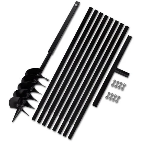 La livraison inclut une tarière de sol, un manche, 8 tubes d’extension et quelques vis.