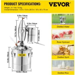 Vevor Distillateur Alambic Chaudiere A Spiritueux Thermometre En Acier Inox 30 L