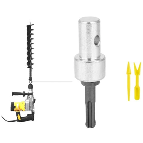 Cet adaptateur peut connecter une perceuse électrique à tige ronde et une tarière de mise à la terre.