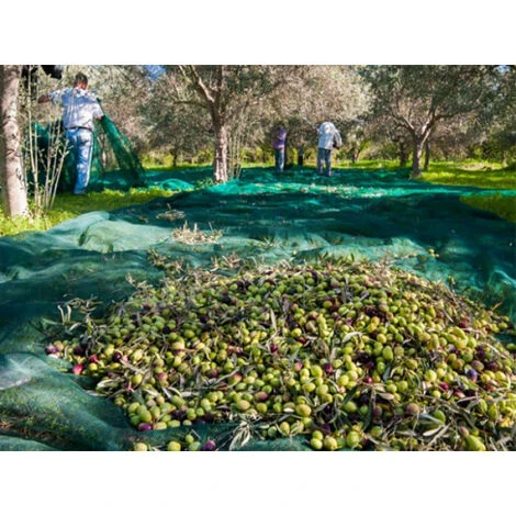 Filet de récolte de forme ‘Pantalon’ permet de passer autour des troncs des oliviers, chênes, noyers avec finition œillets sur le pourtour et coins renforcés et œillets ainsi qu’un surjet de renfort sur le pourtour.