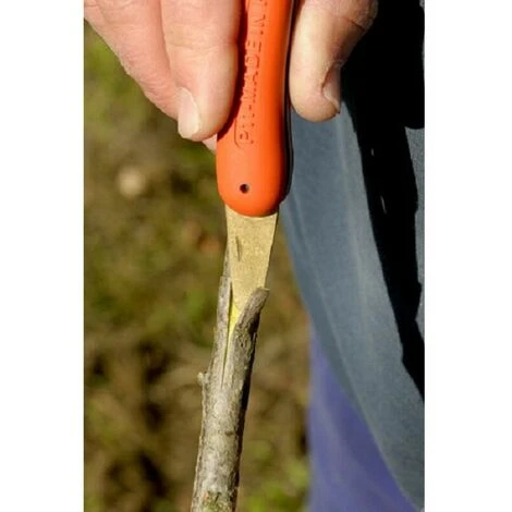 Ce greffoir P11 est de haute qualité grâce à sa lame très affûtée, tranchant comme un rasoir. Il est utilisé pour la greffe des plantes. Spatule repliable en laiton pour lever l’écorce et insérer le greffon. Lame repliable très affûtée et poignée confortable en plastique. Sa lame est en forme de crochet adaptée à la taille et à l’élagage d’arbres plus fragiles.