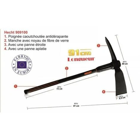 HECHT 909100 Pioche jardin et terrassier 91 cm manche avec noyau de fibre de verre