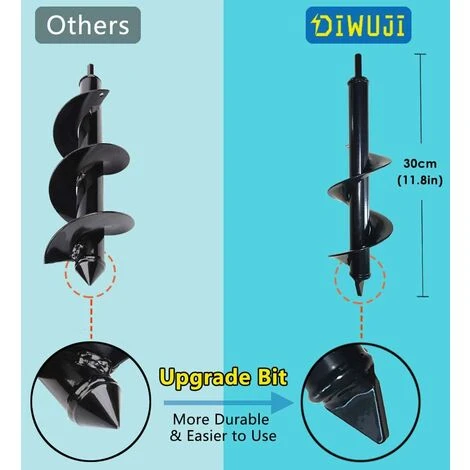 - 【Largement application】 Cette foreuse à spirale est le choix du paysagiste professionnel, simplifie les tâches de forage. Grands outils de bricolage pour planter des bulbes, des plantes en pot, des légumes, des fleurs, des arbres à racines nues et des arbustes, pour cultiver le sol ou les jardinières, pour mélanger des semences, du sol, des engrais, de la peinture ou des mélanges de mortier pour des paysages durs. poteaux, postes d’appât pour les termites, prélèvements de sol, forage de trous.