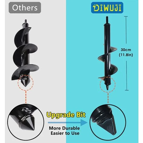 【Conception en spirale pour creuser le sol sans difficulté】 Utilisez une perceuse à basse vitesse (lente), percez le sol ou un paysage approprié, le foret à tarière commencera à travailler sur un sol dur, creusera facilement un trou en quelques secondes