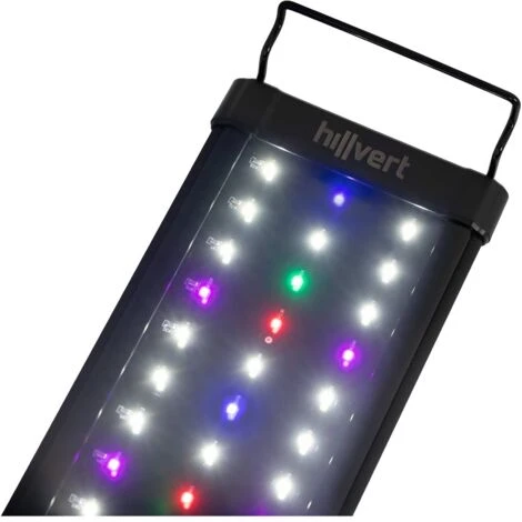 La lampe LED pour aquarium HT-WEDGE-FT30W de hillvert illuminera votre aquarium, qu’il soit rempli d’eau douce ou salée ! En plus de faire briller les écailles des poissons, elle améliorera les conditions de vie de vos plantes sous-marines et contribuera à créer un milieu de vie naturel dans lequel les poissons, les mollusques et les crustacés évolueront sans gêne. Cette lumière d’aquarium de 120 cm comporte 156 LED qui éclairent l’eau de manière impeccable. Pour l’installer, il suffit d’ajuster ses pieds réglables en longueur en tirant dessus, puis de la poser sur le bassin. Laissez-vous convaincre par une qualité élevée et un service compétent : optez dès aujourd’hui pour une lampe LED pour aquarium de hillvert !