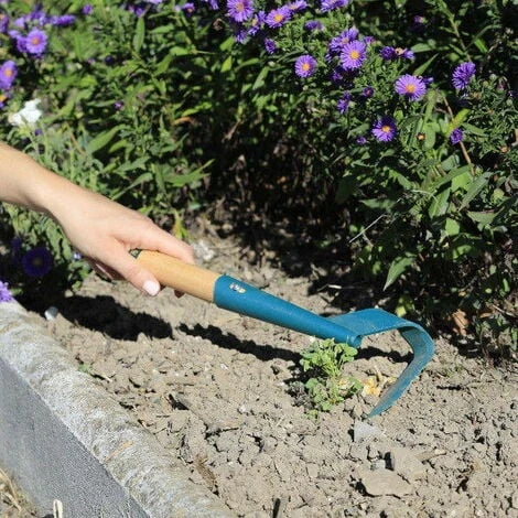 Outil 2 en 1 pour les balconnières, les bordures, les platebandes, et les massifs → Lame tirant-poussant pour désherber les balconnières et les massifs. → Pointe en V pour gratter entre les bordures, les fissures, les coins et les joints et pour tracer des sillons
