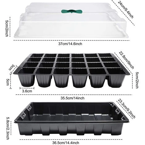 ▣ Un ensemble de 5 mini serres pour plantes, chaque plaque a 24 compartiments individuels.