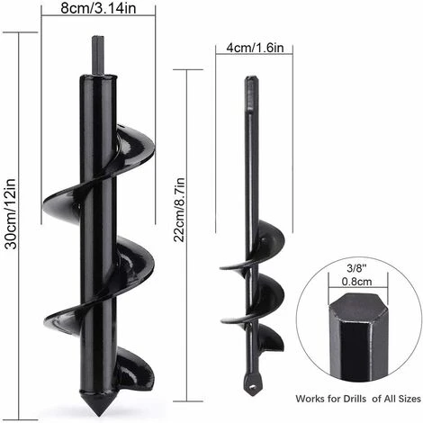 【Le paquet comprend】: Deux tailles différentes de bits de forage en spirale Pour répondre à vos différents besoins: le gros foret convient à la creusage de gros trous de gros et profonds (30 x 8 cm), un autre petit bit de foret est pour les petits trous