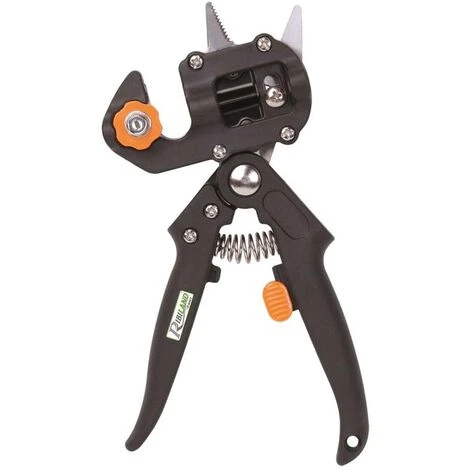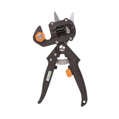 - La partie sécateur avec contre-lame crantée facilite la coupe précise des tiges à greffer.