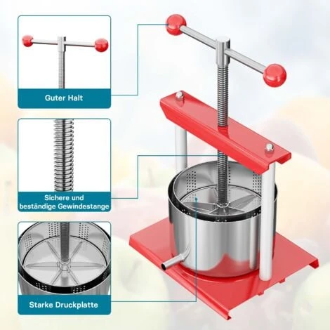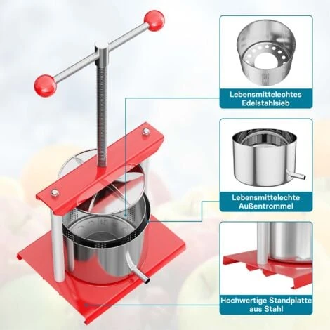 Presse à fruits Pressoir à vin Acier 6l Cuve en Acier inoxydable