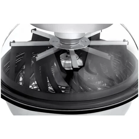 Dans la partie supérieure de l’appareil, sous le couvercle, se trouvent huit bras avec répartiteurs élastiques qui dirigent les fleurs ou les feuilles consciencieusement en direction de la des lames inoxydables au travers de la grille. Les différentes parties sont ainsi triées soigneusement sans endommager la plante. La grille est de plus entourée d’un joint en caoutchouc afin que le récipient d’un diamètre de 43,5 cm (16 pouces) ainsi que le couvercle demeurent parfaitement stables lors du triage.
