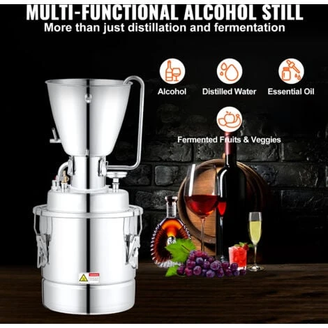 Fabrique en acier inoxydable 304 de haute qualite, ce distillateur alambic peut repondre aux exigences des debutants comme des experts. Il dispose deune grande cuve de fermentation 30 L. L’orifice de gaz deechappement ameliore et le serpentin de condenseur en acier inoxydable a 6 tours vous apporteront des liqueurs plus pures, un refroidissement plus rapide et un rendement plus eleve. Notre chaudiere a spiritueux est parfaite pour un usage domestique, compatible avec differentes methodes de chauffage et peut distiller du vin de fruits, des boissons alcoolisees, de leau, des huiles essentielles, etc.