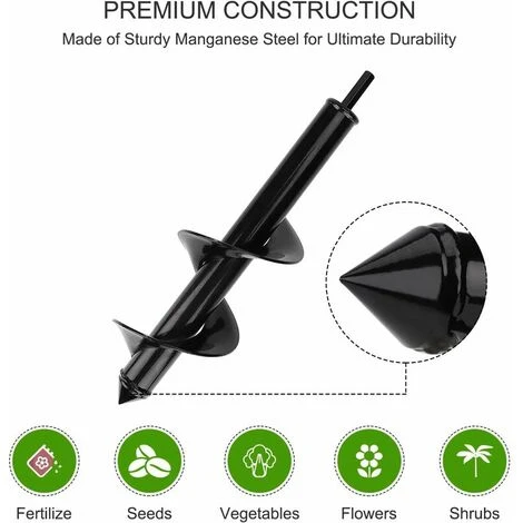 - Creusez rapidement ? Creusez facilement la plupart des types de sol, même l’argile et la roche. Rend le travail de plantation beaucoup plus facile et plus rapide, économisez votre dos et laissez le semoir en spirale faire le travail !